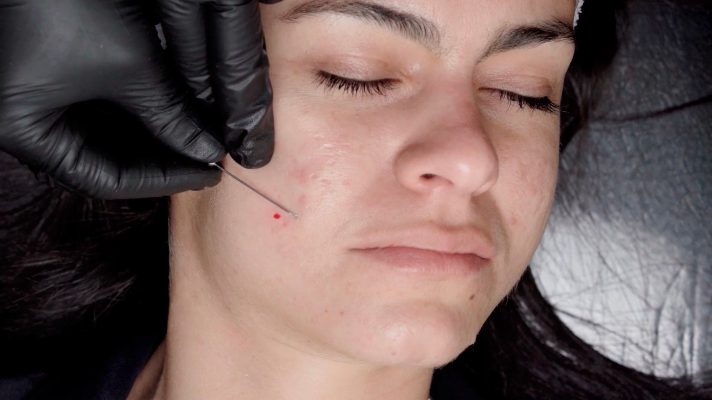 Tratamiento: Mesoterapia puntual con ácido tranexámico y luego microneedling intenso con dermapen en la misma zona.